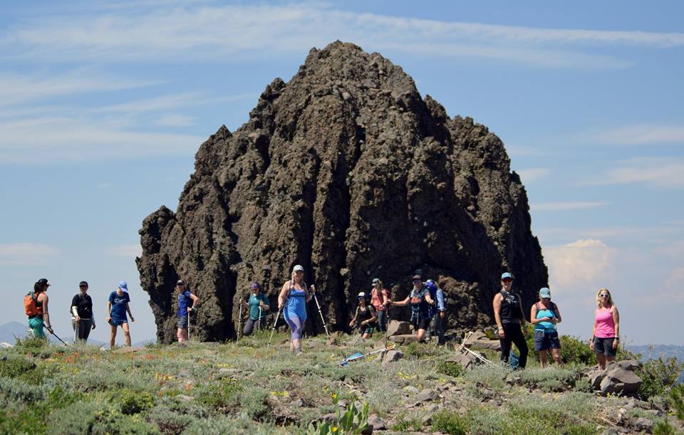 Reaching the summit—well over 9,000 feet—on this four-hour hike, was a test of endurance and strength. We traversed snow and ice, crossed a stream, and tested our ability to hike at a high altitude. Four things were super helpful and needed: trekking poles, lots of water, good hiking boots, and friends.