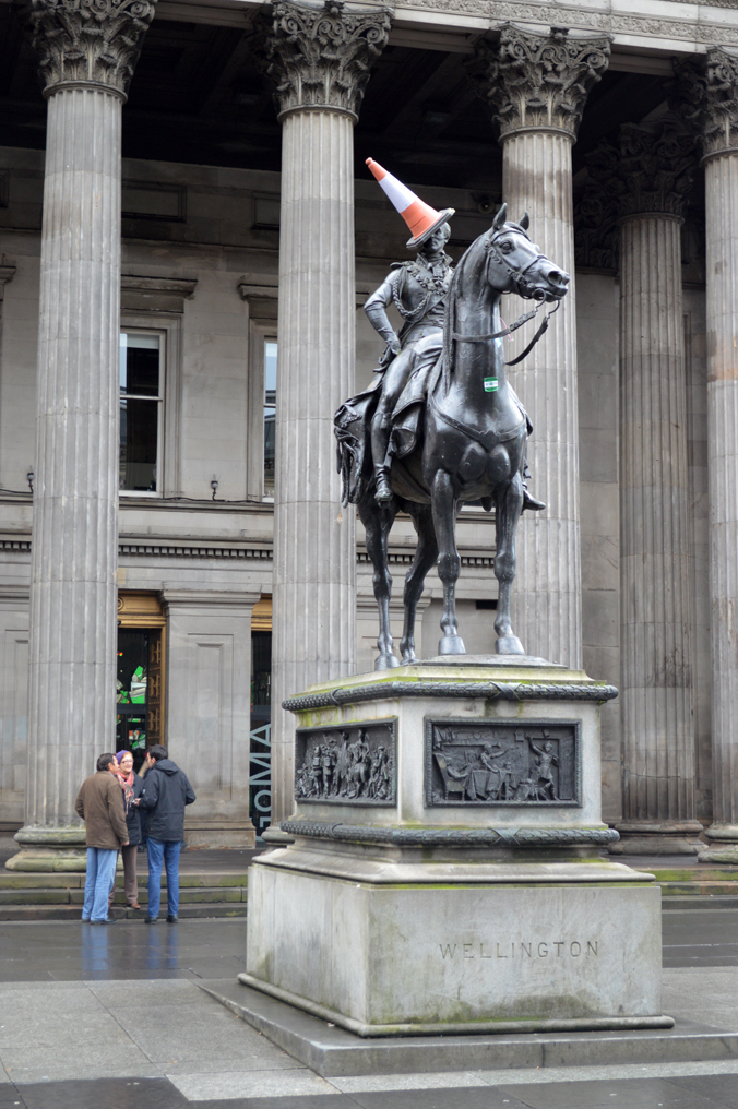 You might need to take a double look at this statue outside the Gallery of Modern Art on Queen Street, but the hat is a traffic cone. Rumor says that students every night come and throw a traffic cone in and police take it down every morning – I think it’s now permanent.